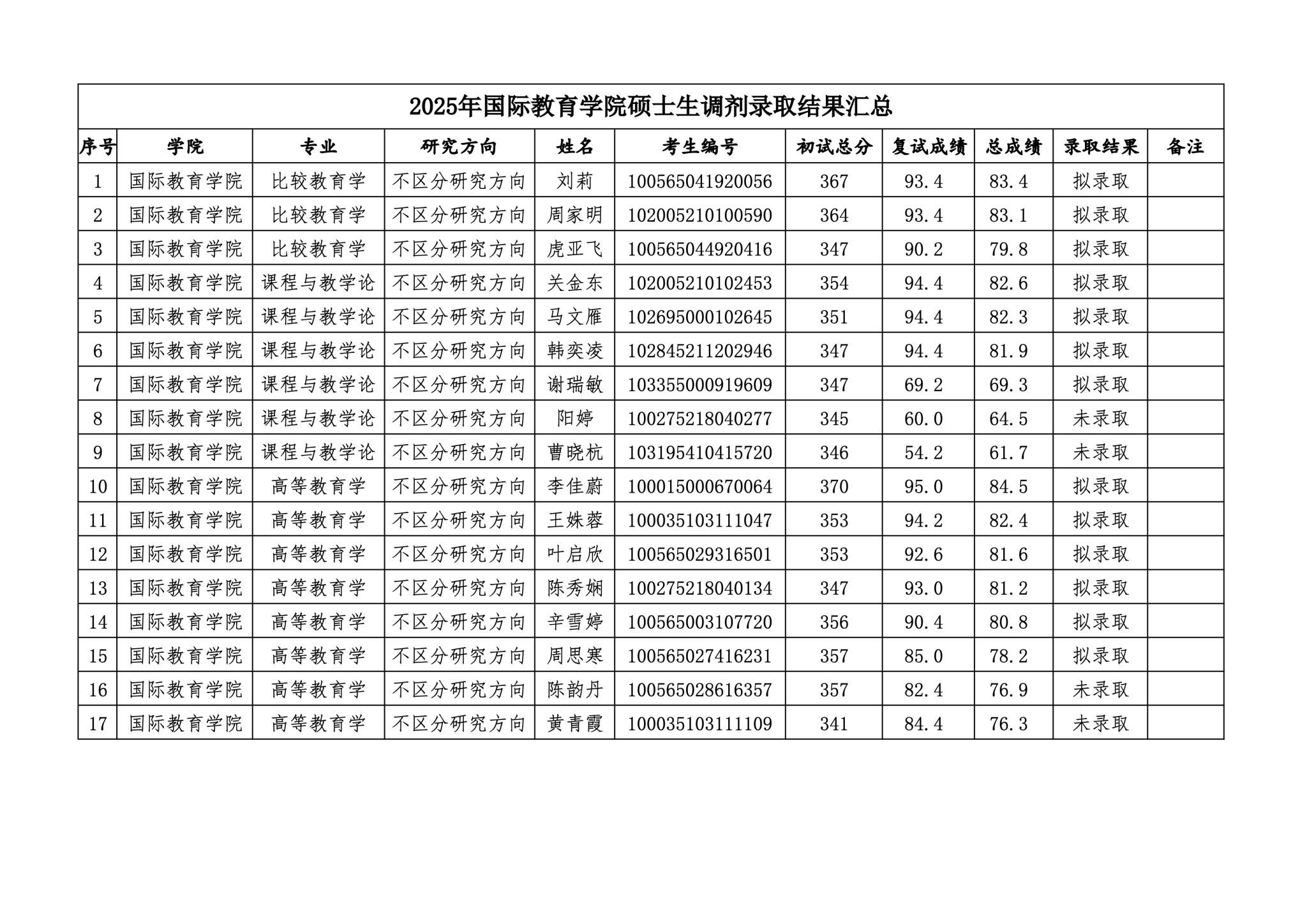 2025年国际yl9193永利集团硕士研究生调剂拟录取名单