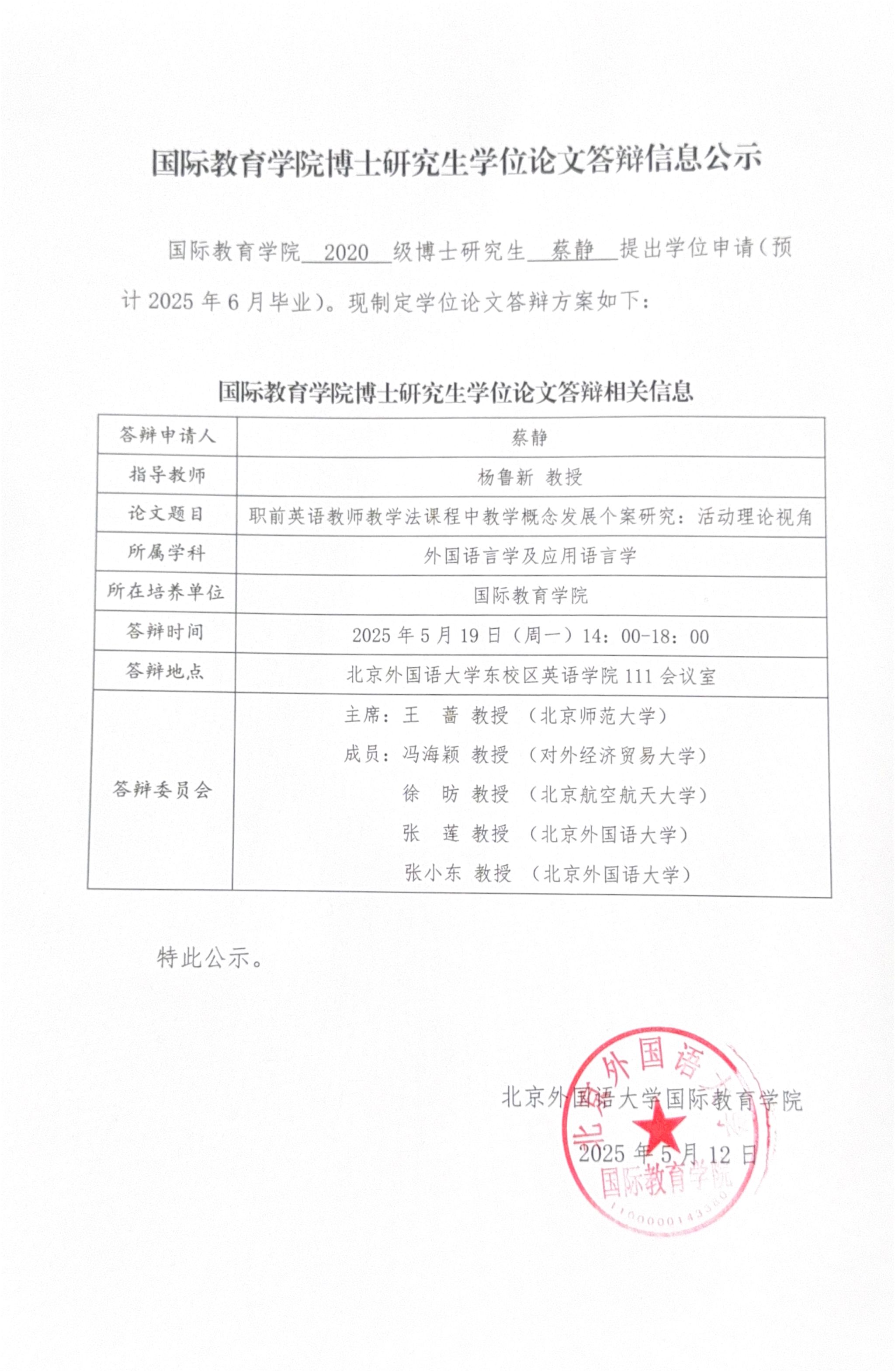 国际yl9193永利集团博士研究生学位论文答辩信息公示
