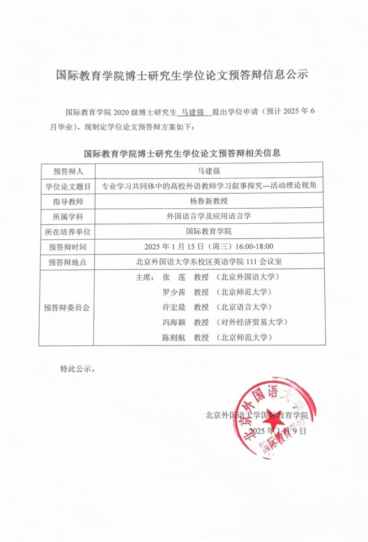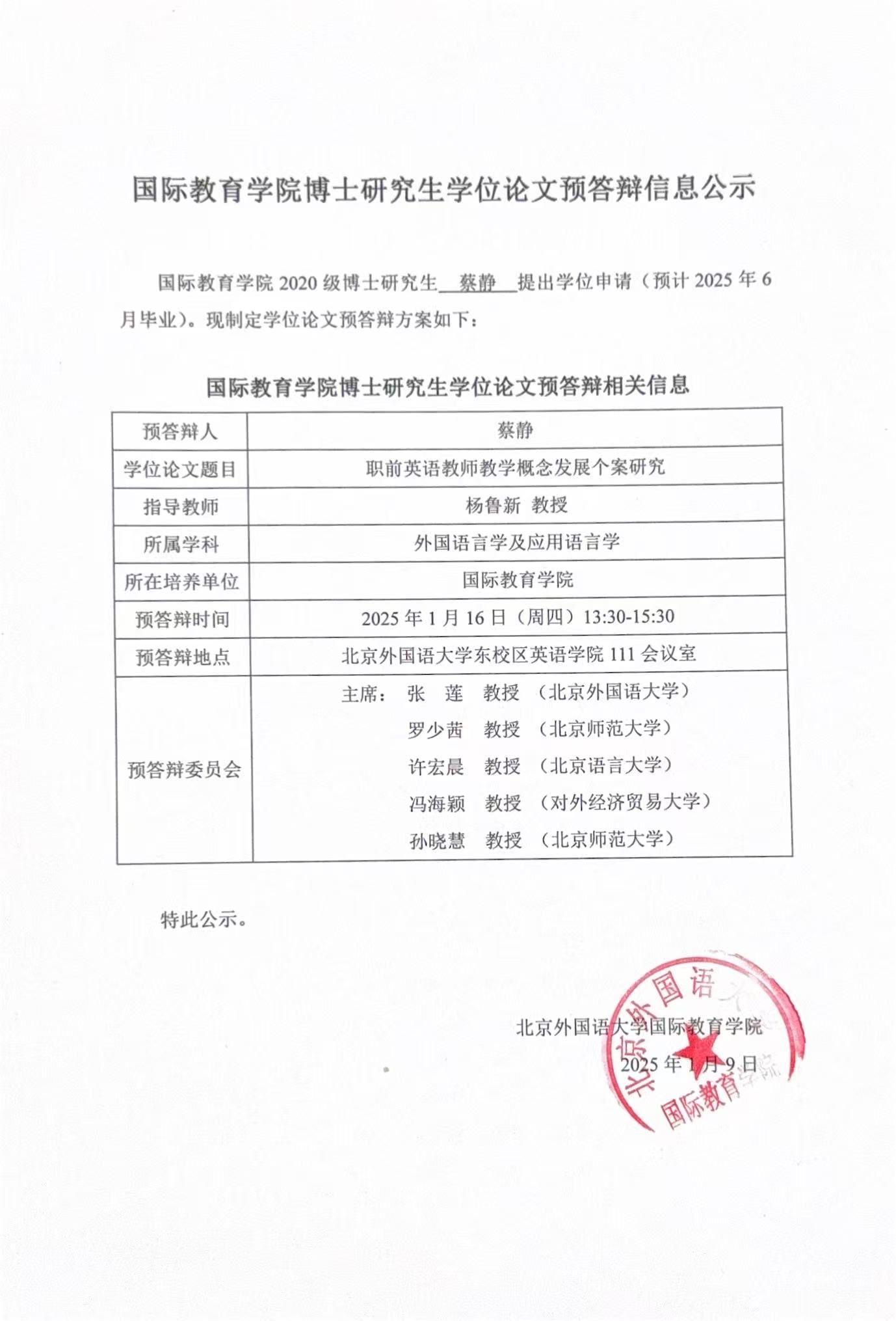国际yl9193永利集团博士研究生学位论文预答辩信息公示
