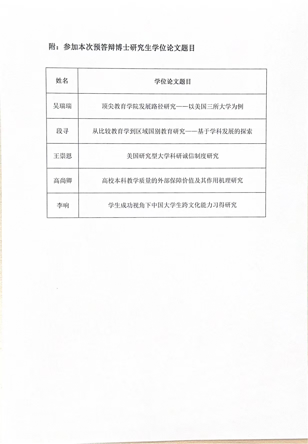 国际yl9193永利集团博士研究生学位论文预答辩信息公示