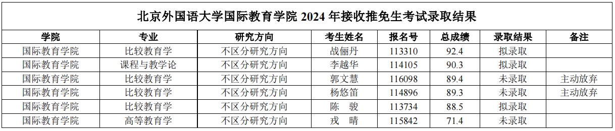 国际2024年接收推免生考试录取结果