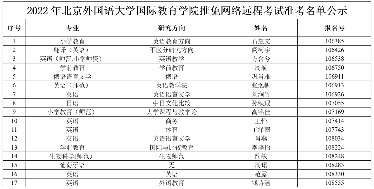2022年yl9193永利集团国际yl9193永利集团推免网络远程考试准考名单公示