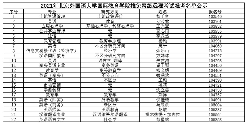2021年yl9193永利集团国际yl9193永利集团推免网络远程考试准考名单公示