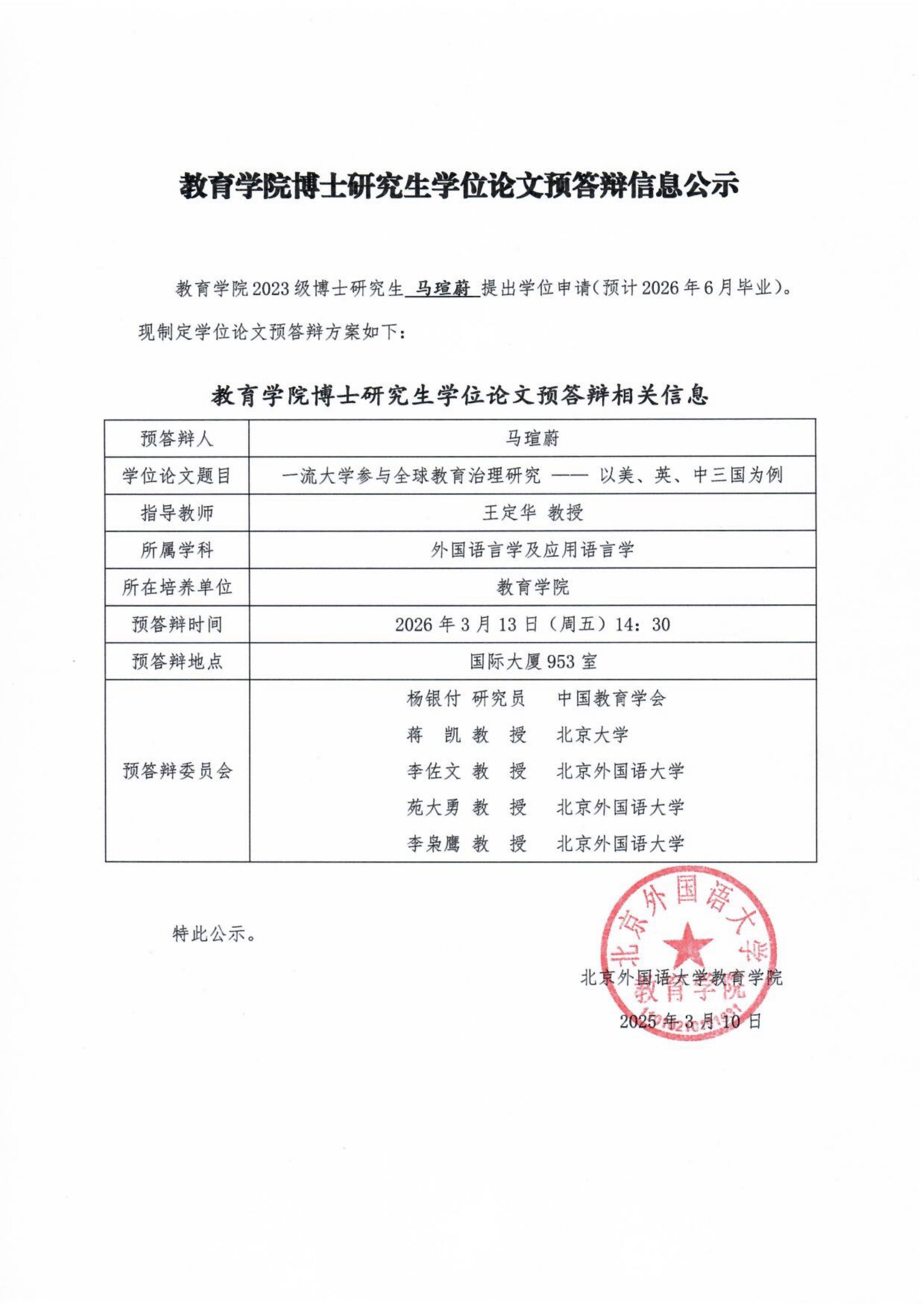 yl9193永利集团博士研究生学位论文预答辩信息公示