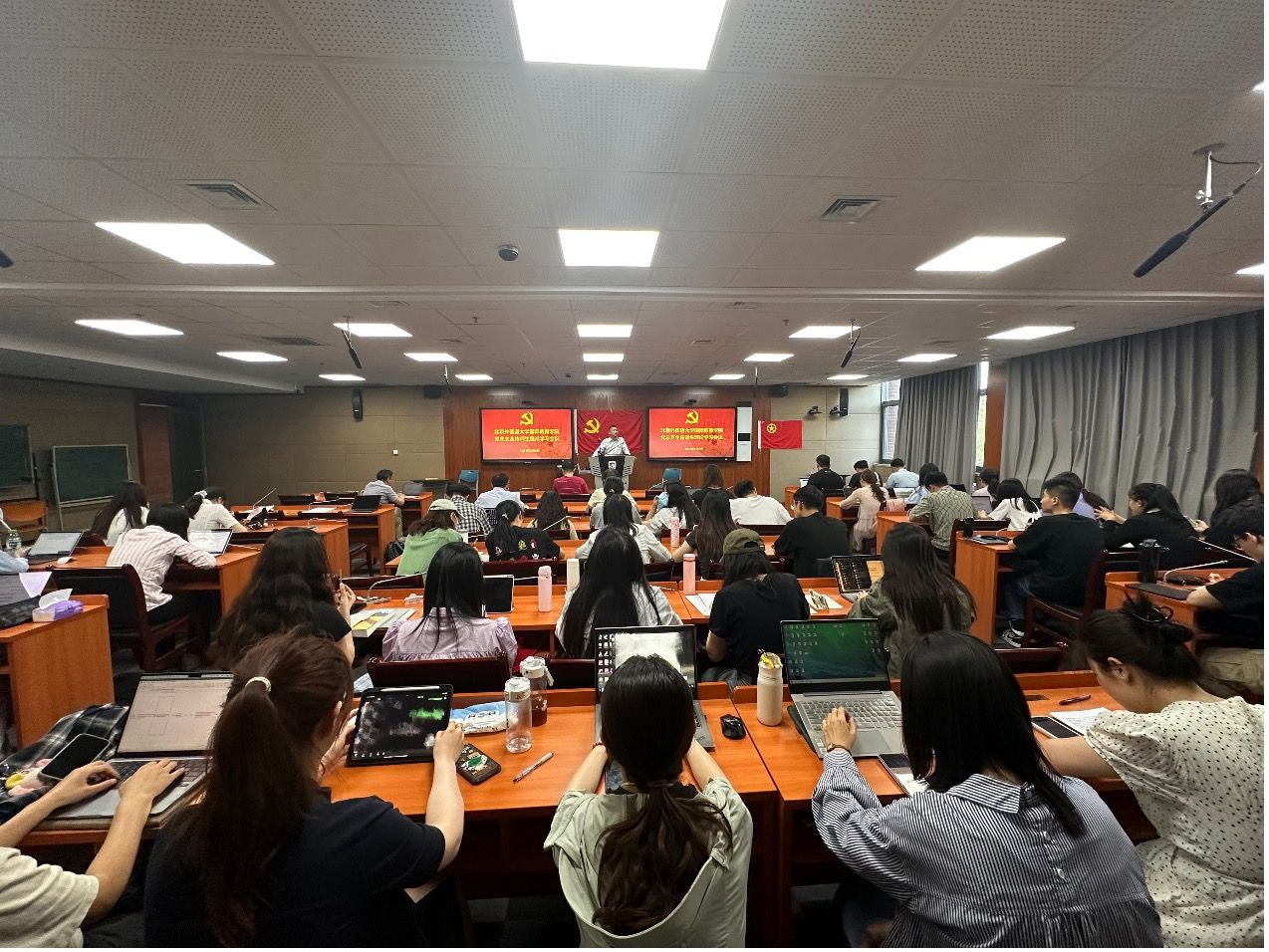 与会师生首先集中观看学习了警示教育片,了解党员违纪典型案例。随后,教师党支部书记涂端午、员工党支部书记尤铮先后围绕《中国共产党纪律处分条例》进行导学。涂端午阐释了纪律学习实践中他律和自律的辩证关系,并指出党员应切实增强学习的自觉性和坚定性,用切实行动来践行《条例》的要求。尤铮介绍了《条例》修订的主要情况、重要意义,以及在学习中强化理论联系实际等主要思考。