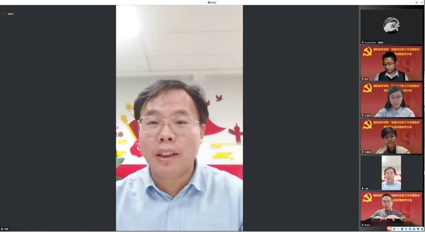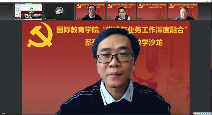 在第二阶段的学习活动中,公司研究生专业必修课《习近平总书记关于教育重要论述研究》主责教师祝军,基于该课程的三轮教学实践,就进一步做好课程思政和思政课程建设分享了相关思考和建议。巫锐副教授做了题为《二十大精神进课堂——比较教育理论与方法课程探索》的发言,他结合本人参加公司青年教师教学竞赛的经验,就如何利用专业理论知识对党的二十大报告提出的“中国式现代化”“教育公平”等概念进行解读。在交流发言环节,苑大勇副教授分享了对专业教师发展“教与学”“行与思”的认识;王名扬副教授就在线学习中应该如何构建新的师生关系、新的课业关系、新的教学关系和新的导生关系进行了分享。