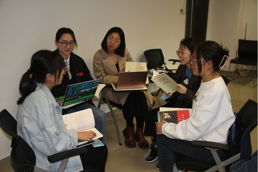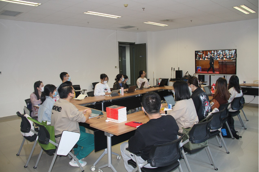 开幕式后,参加集中观看学习的师生结合学习最新出版的《习近平总书记教育重要论述讲义》(英文版)和《习近平与老员工朋友们》交流了学习收获。