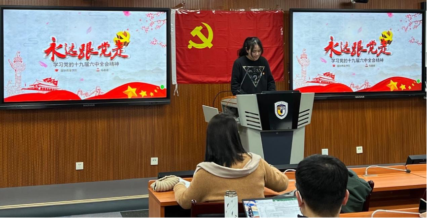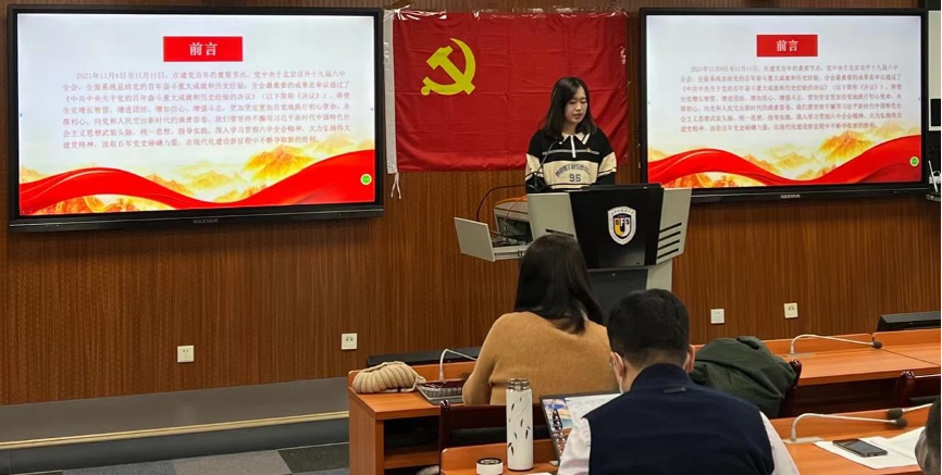 为深入学习贯彻党的十九届六中全会精神,11月24日下午,国际公司党支部于国际大厦317教室组织开展以“学习贯彻党的十九届六中全会精神”为主题的集中理论学习活动。党支部书记王名扬同志主持会议,全体党员师生参会。