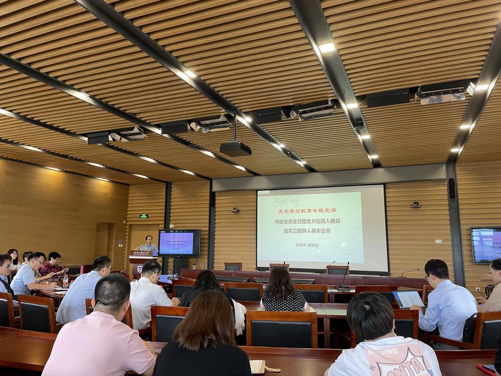 2021年6月23日下午,根据公司党史学习教育领导小组工作部署,公司教师党员在东校区图书馆五层学术报告厅参加了孙有中副董事长讲授的“构建全员全过程全方位育人格局,落实立德树人根本任务”党史学习教育专题党课。