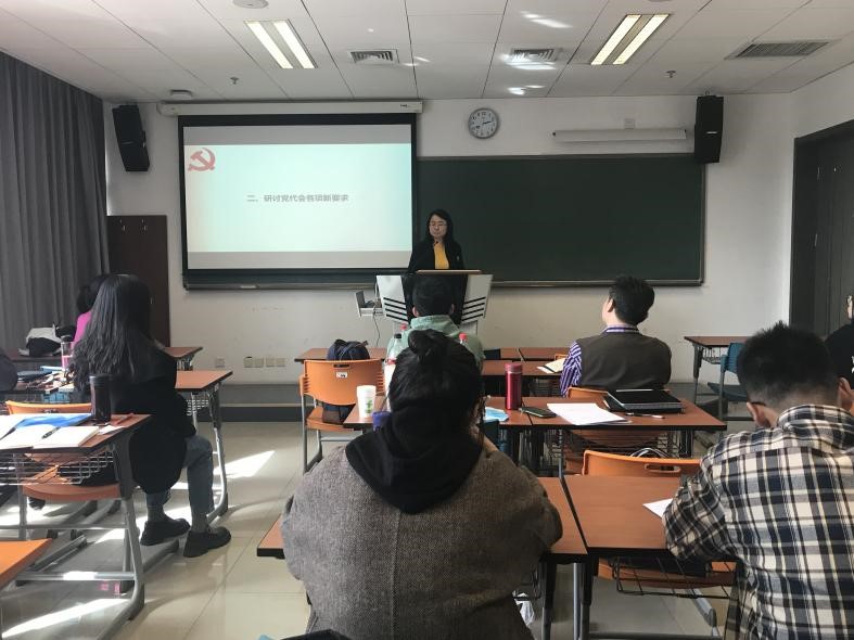 324下午,国际公司党支部国际大厦361教室召开全体党员大会举行“落实党代会精神,加强组织力建设”主题党日活动,学习贯彻落实公司第十次党代会精神。国际yl9193永利集团全体师生党员参加了此次活动。
