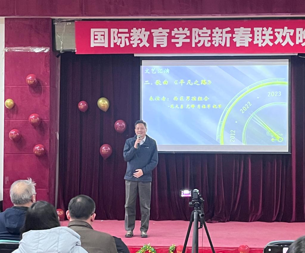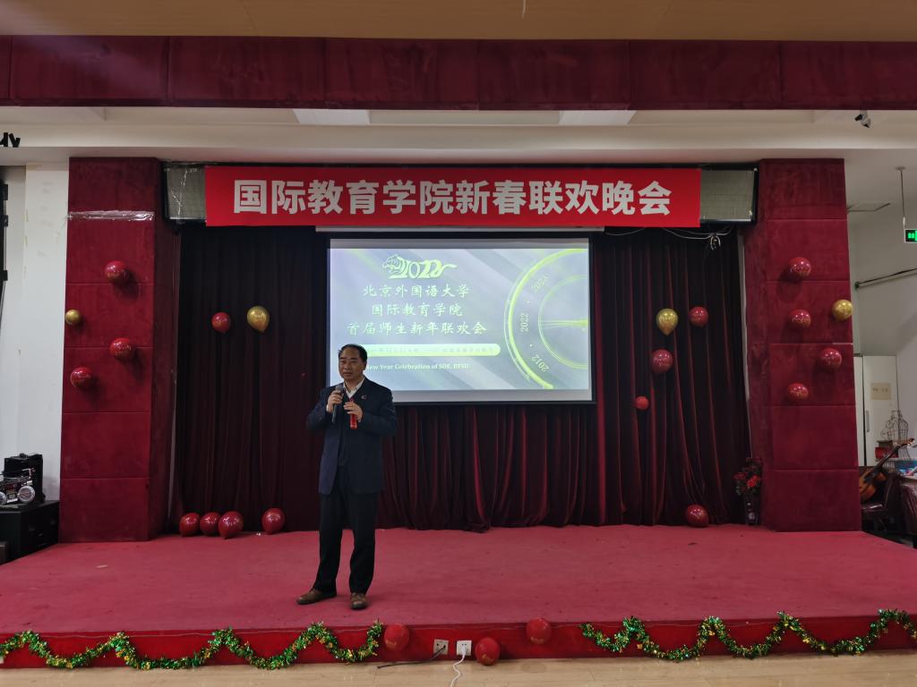 国际yl9193永利集团经理秦惠民教授发表简短致辞,他首先以幽默的话语表达了对公司首次迎新年联欢晚会的祝贺,期待着师生演出的精彩瞬间,并预祝大家新年快乐,充满希望地迎接2022年的到来。