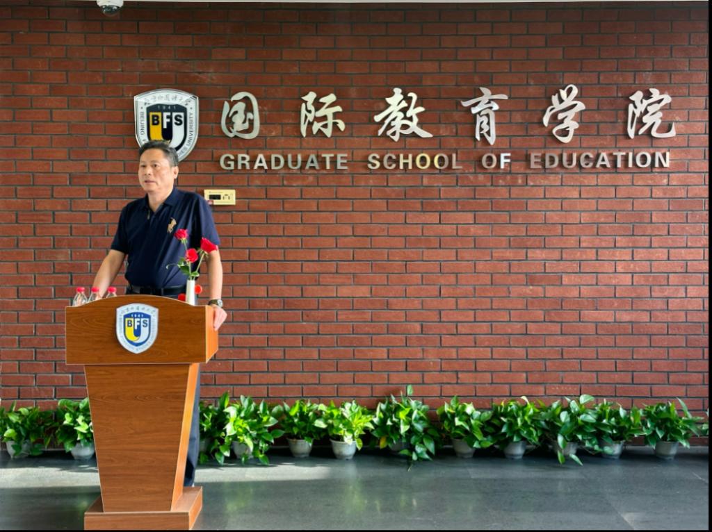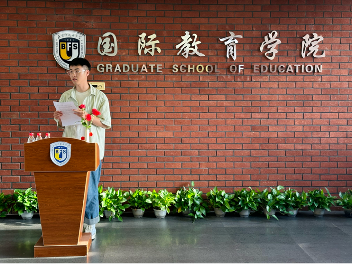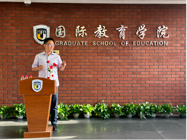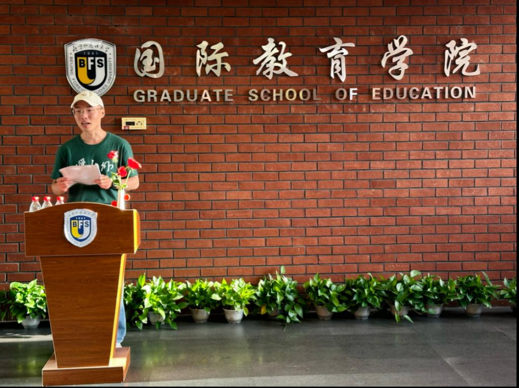 老生代表、2023级硕士研究生周鸿强结合参与公司暑期社会实践活动的经历,从“如何运用教育学科知识分析和解决问题”的角度,分享了自己对于全球化背景下教育学科价值以及教育学子肩负的时代使命的思考。
