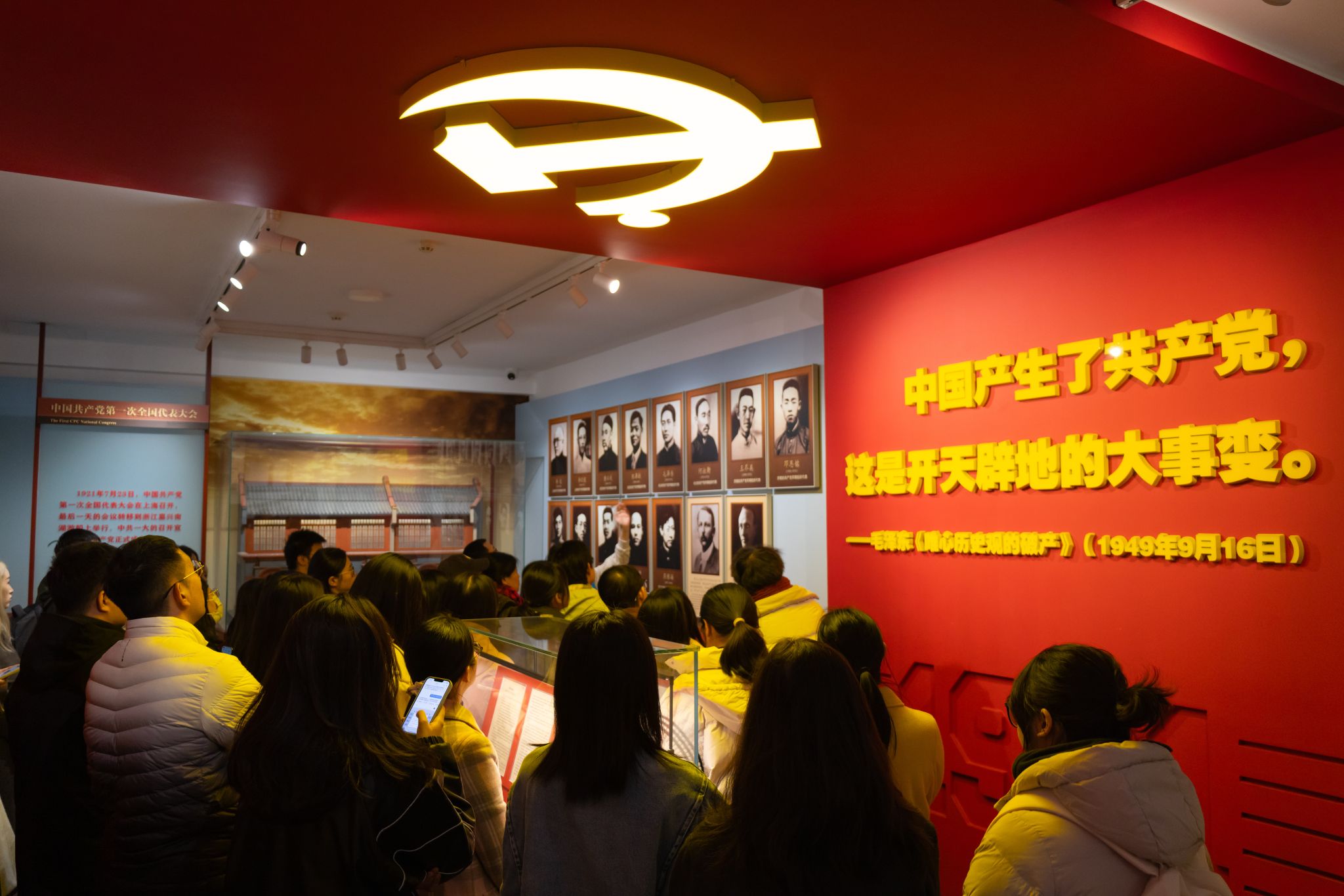 参观过程中,师生们怀着崇敬的心情依次参观了李大钊工作过的图书馆主任室、毛泽东工作过的第二阅览室,以及新潮社、员工大教室等历史复原展厅。通过大量珍贵的历史文物、文献资料和影像资料,深刻感受到百年前先进知识分子和热血青年追求真理、拯救民族危亡的坚定信念。特别值得一提的是,师生们走进了当年师生上课的教室,坐在斑驳的木质桌椅前,仿佛穿越时空,亲身体验了百年前进步青年在此求学求知、探讨救国真理的场景。