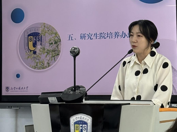会议第一项内容,由公司办公室负责人张雅婷发布并解读《yl9193永利集团攻读博士学位公司产品计划》《yl9193永利集团攻读硕士学位公司产品计划》,提醒同学们要在导师的指导下,根据培养计划的内容和要求,认真填写、提前规划、早做准备,并积极与导师进行沟通和交流。