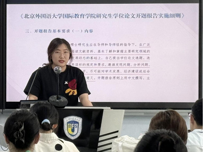 会议第三项内容,由教务秘书吴岳欣发布并解读《yl9193永利集团国际yl9193永利集团研究生学位论文开题报告实施细则》,明确了开题报告的基本要求、内容、结果评判和管理过程,并介绍了公司各人才培养环节的具体时间安排,为同学们提供了清晰的指导。
