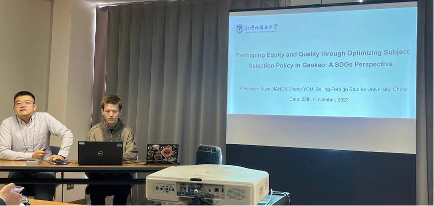 尤铮博士作了两个分会场报告,分别和公司硕士研究生蒋旭泽、杨晓坤合作报告了《Reshaping Equity and Quality through Optimizing Subject Selection Policy in Gaokao: A SDGs Perspective》和《China-Africa Vocational Education Cooperation under Government-Industry-University-Research Collaborative Mechanism in the post-conflict period --Tanzania National Vocational Standards Development Project as an Example》,回应联合国提出的可持续发展目标。