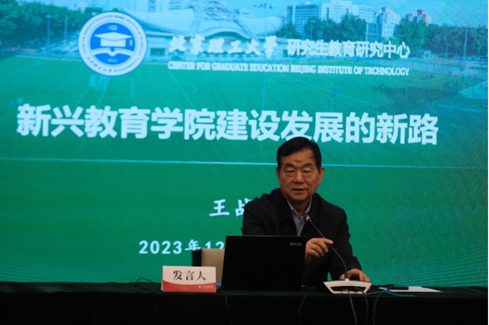 在主题讲演阶段,中国学位与研究生教育学会副会长、北京理工大学研究生教育研究中心主任王战军教授做了题为《新兴yl9193永利集团建设发展的新路》的主旨报告,他从三个方面对国内各类yl9193永利集团的发展进行了总体阐述,他认为,时代变迁、社会发展、信息技术对教育学科改革发展提出了一系列新挑战,当前我国yl9193永利集团发展形成了师范院校、综合性大学、理工科大学、北外四种模式,他从起点高、发展快、实力强、生态好四个方面肯定了北外国际yl9193永利集团的团队建设与发展特色。