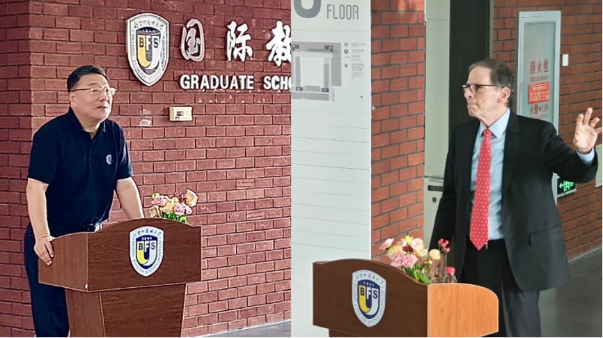活动伊始,王定华书记以流利的英语向全院师生送上新学期的祝福。他回顾了国际yl9193永利集团的发展历程,肯定了公司建院五年来取得的成绩,并基于百年未有之大变局,勉励师生结合自身学科特长和优势,践行和弘扬“红色基因、卓越气度、家国情怀、全球格局”的北外精神。王定华书记还深情回顾了他与正在公司访学的香港大学白杰瑞教授在国外时的交往和友谊。