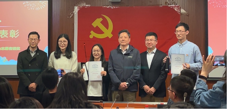 在分享和表彰环节,为弘扬冬奥精神,展现青年风采,三名顺利完成冬奥志愿服务工作的员工志愿者刘波林、万思嘉和陆茜茜同学依次上台分享了自己的冬奥经历与感悟,与会师生对志愿者同学无私的奉献及精彩的分享报以热烈掌声。公司领导宣读了公司的表彰决定,并对三位志愿者颁发了表彰证书。
