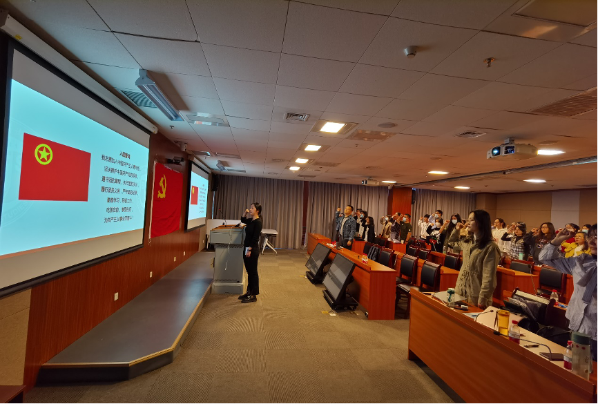 最后是主题团日活动,由团总支书记尤铮老师带领全体团员重温了入团誓词,员工大会在青春激昂的中国共产主义青年团团歌声中徐徐落下帷幕。