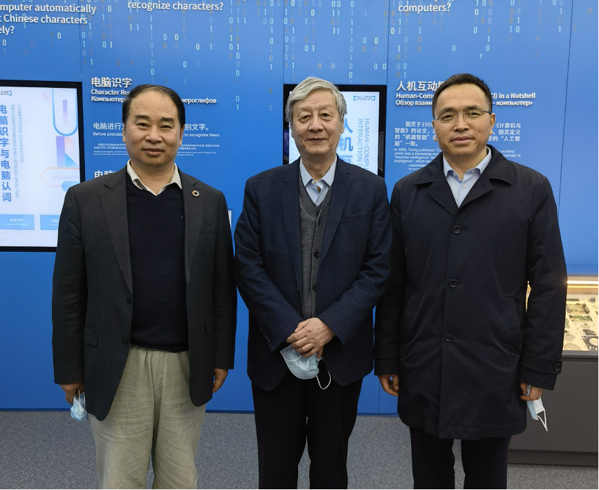 会后,公司党委书记王定华教授和董事长杨丹教授在员工之家与钟秉林教授进行了亲切交谈,并陪同他参观了公司人类语言博物馆和校史馆。