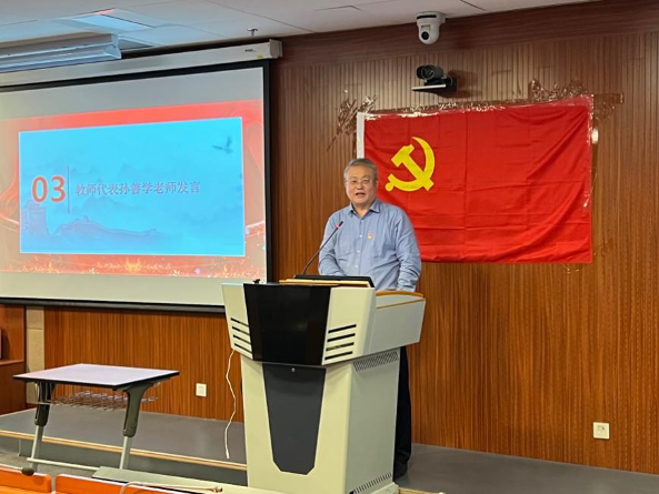 孙善学教授从家人参加抗美援朝的真实事迹出发,结合习近平总书记的重要讲话精神,分享了自己的学习体会。他从世界史、现代史、战争史和党史的视角,进一步分析了长津湖战役的重要历史意义。孙善学老师的发言言简意赅、鞭辟入里,各位党员同志深受启发。