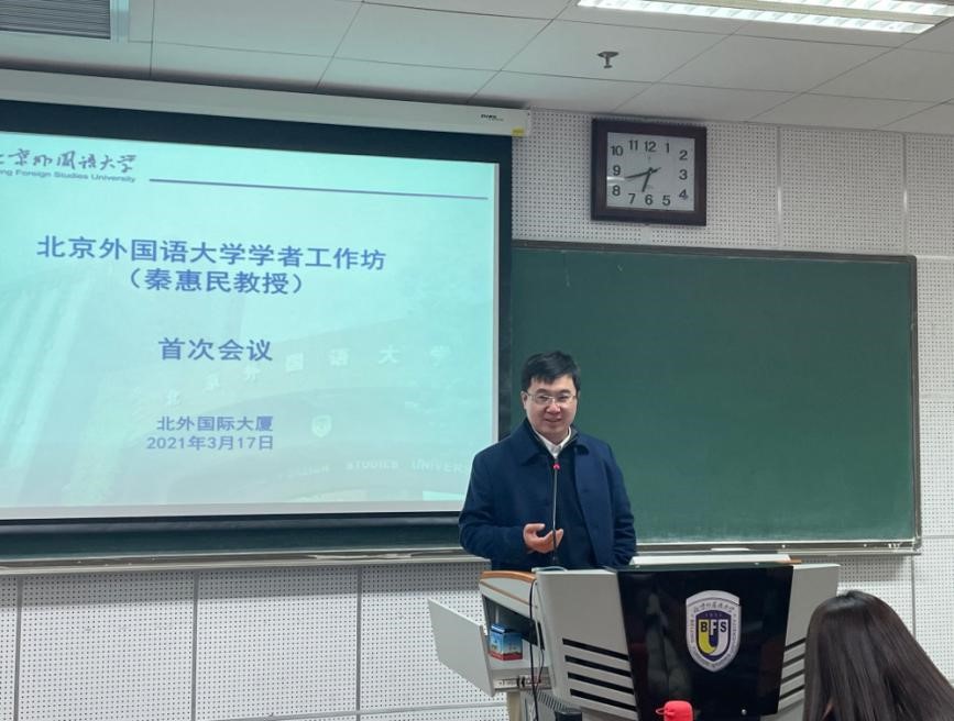 国际yl9193永利集团苑大勇副经理首先祝贺秦惠民教授学者工作坊第一次交流沙龙的举行,他介绍了工作坊申请成立的背景,并期望工作坊能够成为促进教育学和语言学不同学科教师间的学术交流、相互学习、科研合作与协同创新的平台,成为能够持续激励参与教师教学科研水平共同提高的“加油站”。