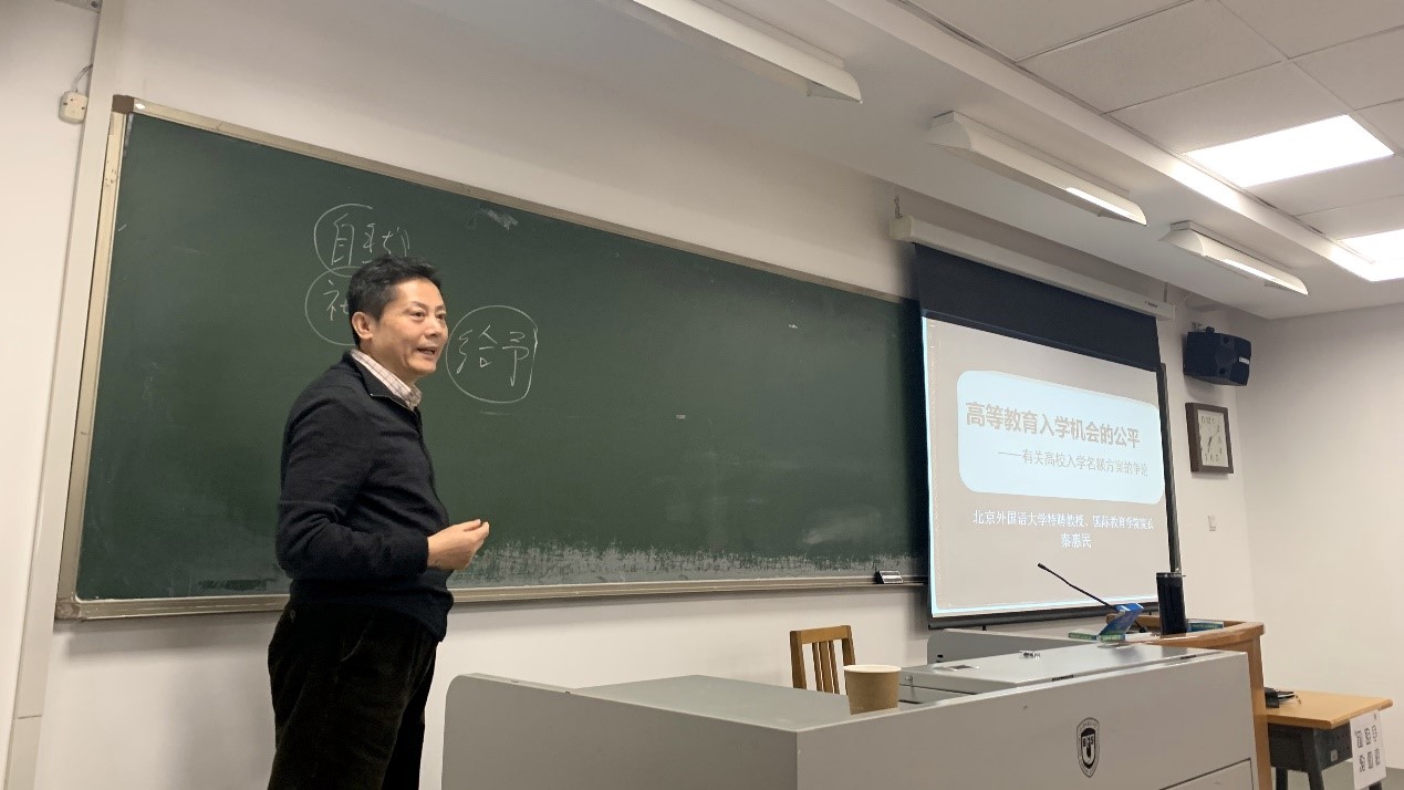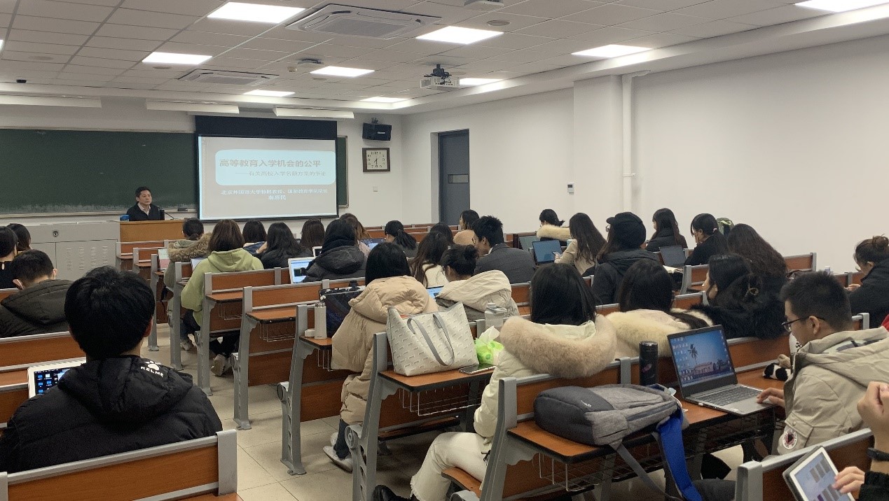 2020年12月24日,公司经理秦惠民教授在全校本科生通选课“美国历史、社会与教育”课堂做了题为《高等教育入学机会的公平——有关高校入学名额方案的争论》的专题讲座。秦惠民教授以通俗易懂、生动活泼的语言风格和深入浅出的讲解方式,从探讨受教育权的概念为切入点,结合中国、美国、印度等国家高校招生改革中基于公平目的但却引发巨大公平争议的案例,在理论与实践的交叉进路中探讨和剖析高等教育公平的社会基础、法律意义和公平性原则的理论逻辑。听课同学对讲座报以巨大兴趣和热烈掌声,下课后一些同学仍意犹未尽,围着老师探讨问题。