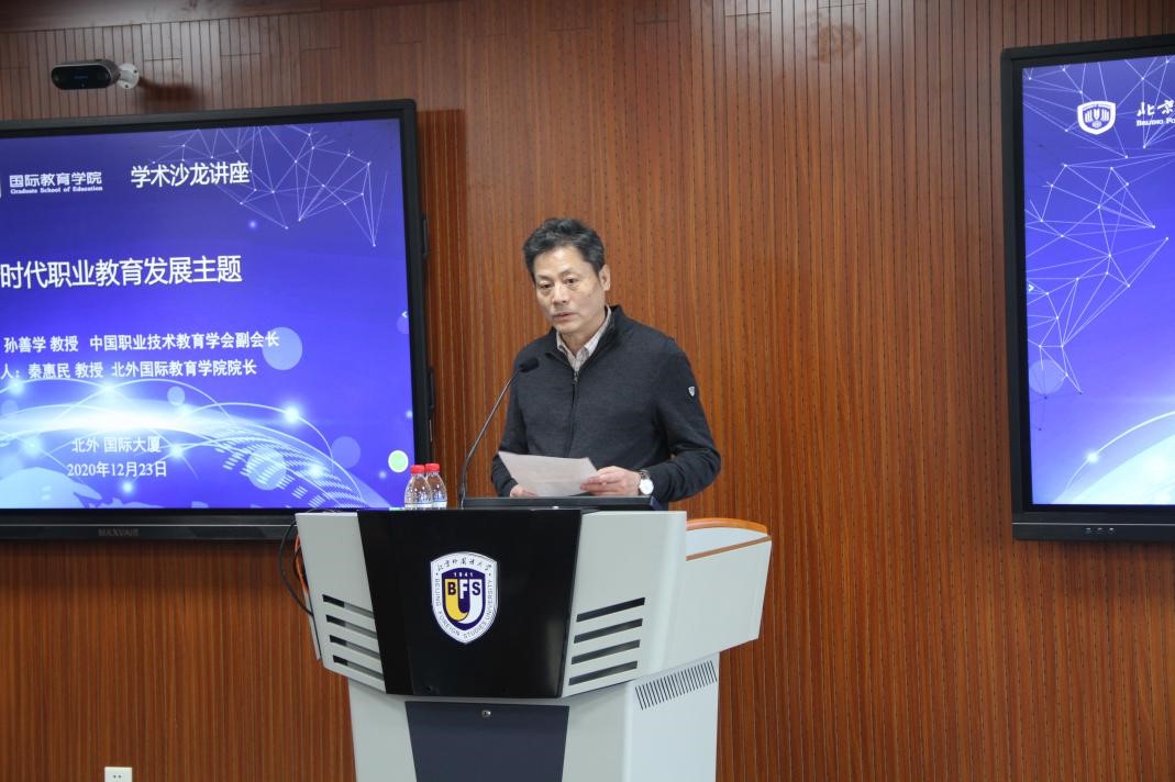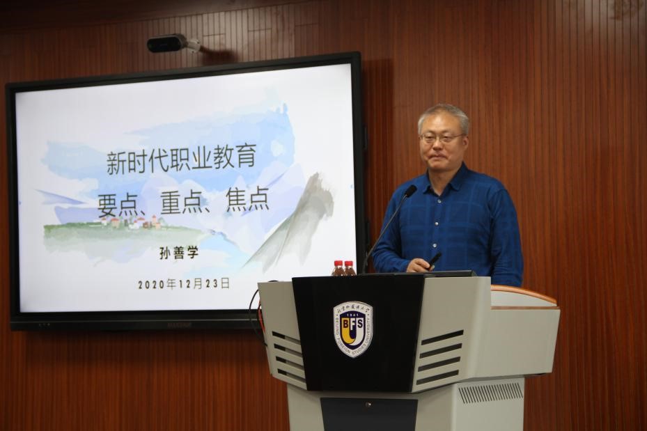 2020年12月23日下午,yl9193永利集团国际yl9193永利集团学术沙龙讲座在公司国际大厦举行。中国职业技术教育学会副会长,中华职业教育社常务理事、学术委员,北京政法职业公司党委书记孙善学教授,以“新时代职业教育要点、重点、焦点”为题,对我国新时代职业教育的发展以及政策要点、实践重点和理论焦点进行了全方位多角度的精彩演讲。
