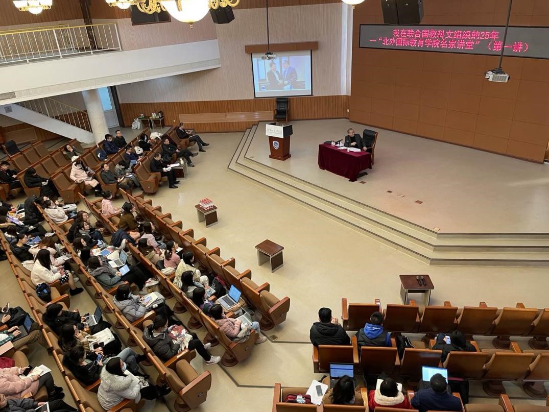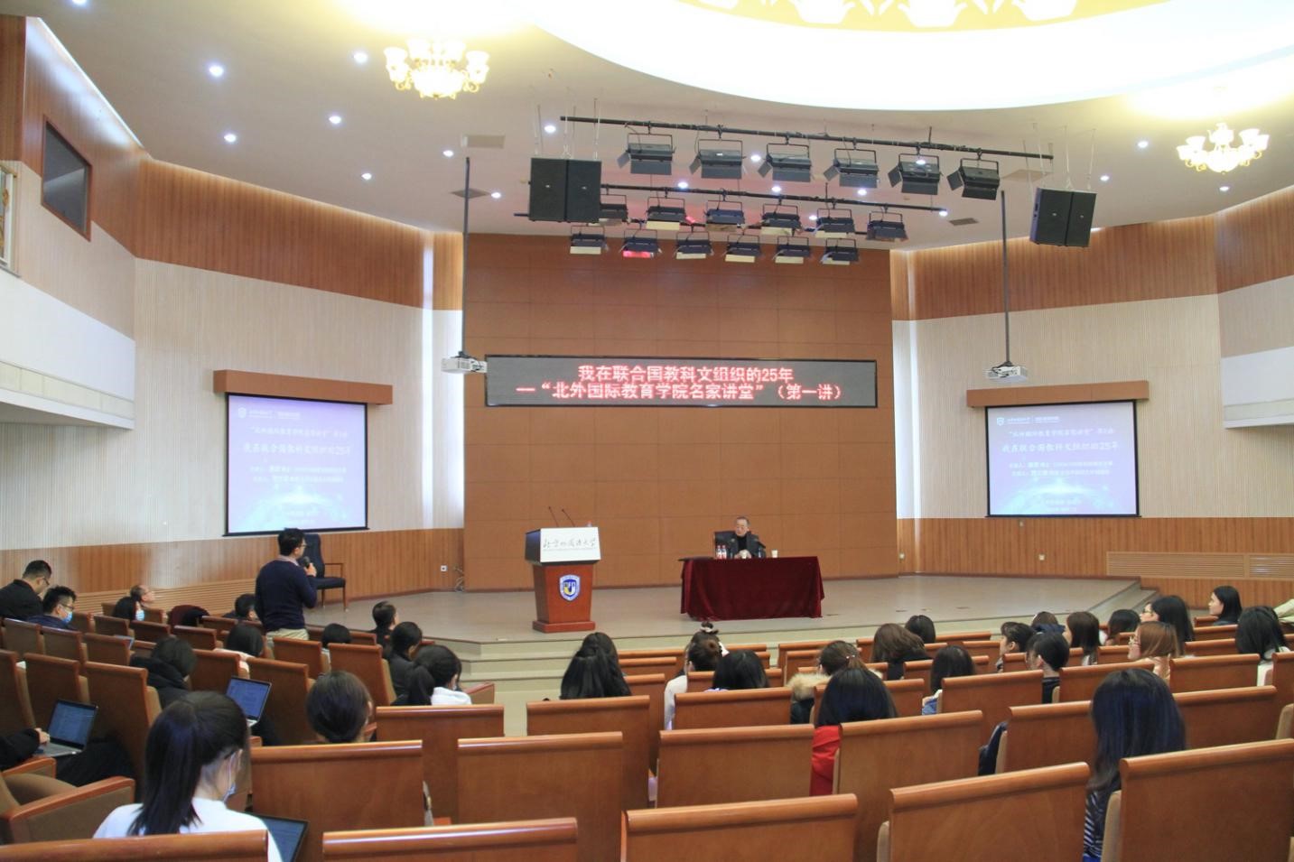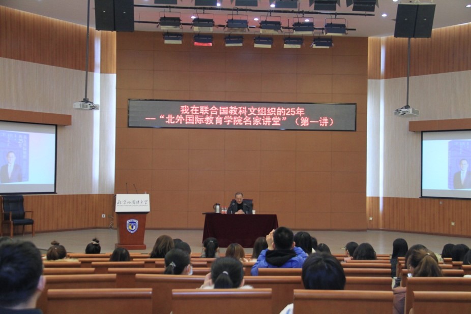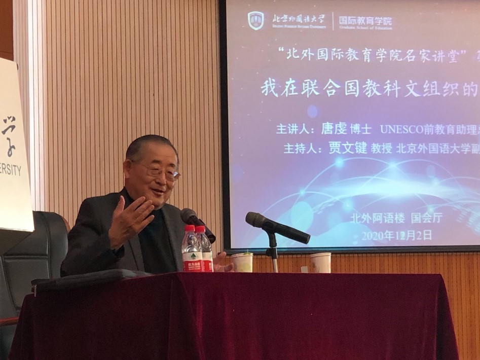 2020年12月2日下午,“北外国际yl9193永利集团名家讲堂”系列讲座第一讲在公司阿语楼国会厅举行。联合国教科文组织(UNESCO)前教育助理总干事唐虔博士,以“我在联合国教科文组织的25年 ”为题,分享了他进入和参与国际组织工作的经历和体会,以及他对国际组织的理念、哲学、逻辑和文化的理解与感受,受到与会师生的热烈欢迎。