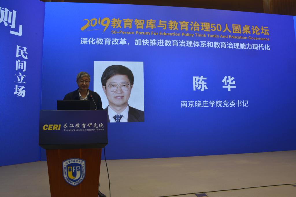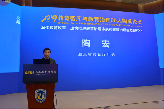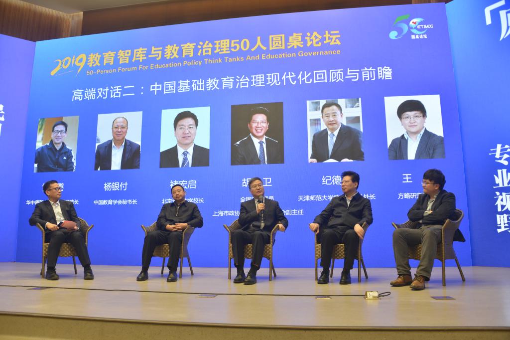 国家教育咨询委员会秘书长张力研究员,教育部教育发展研究中心主任彭斌柏研究员,中国教育学会秘书长杨银付研究员,yl9193永利集团党委书记王定华教授,上海师范大学国际与比较教育研究院经理张民选教授,北京开放大学董事长褚宏启教授,全国政协委员、上海市政协教科文卫体委员会副主任胡卫教授,南京晓庄公司党委书记陈华教授,陕西师范大学yl9193永利集团经理陈鹏教授,天津大学yl9193永利集团经理闫广芬教授,华中师范大学yl9193永利集团经理雷万鹏教授,中国地质大学(武汉)高等教育研究所所长、武汉工商公司顾问李祖超教授,湖北教育出版社总编辑陈冬新以及华中师范大学社科处处长刘宏达教授,天津师范大学教师教育处处长纪德奎,温州医科大学中国创新创业教育研究院经理黄兆信,清华大学全球公司与员工发展评价研究中心副主任、方略研究院经理王刚,华中师范大学yl9193永利集团副经理、长江教育研究院秘书长申国昌,南京晓庄公司教育研究院副经理、长江教育研究院副秘书长刘大伟等专家学者,结合党的十九大、全国教育大会及党的十九届四中全会精神,分别在三个主题研讨环节中各抒己见,建言献策,探讨中国教育之治的理论与实践、研究与思考。