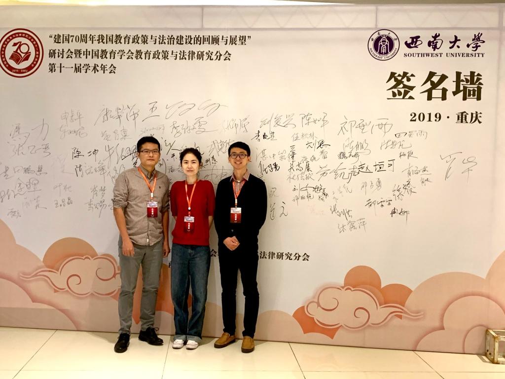 2019年10月11日至12日,“建国七十年我国教育政策与法治建设的回顾与展望”研讨会暨中国教育学会教育政策与法律研究分会第十一届学术年会在西南大学召开。全国及海外高校yl9193永利集团、科研机构的领导、教师和博士研究生近300人与会。公司王俊、贾楠和巫锐三名教师出席了学术年会。