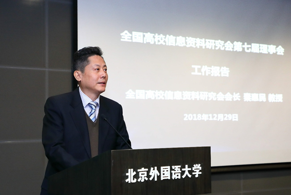 最后,全国高校信息资料研究会新当选会长秦惠民教授讲话。他感谢大家的信任及对第七届理事会工作的充分肯定,表示将以饱满的热情和坚定的信心担当起这份责任。他强调新一届理事会将坚持与时俱进,以改革的思路和创新的精神谋划好学会进一步的发展思路、发展战略和发展步骤,进一步推进学会的转型升级,拓宽工作视野,创新工作模式,坚持学术立会,努力学术强会,不辜负大家的期望和重托,使学会工作更上一层楼,争取更大的进步和成绩。