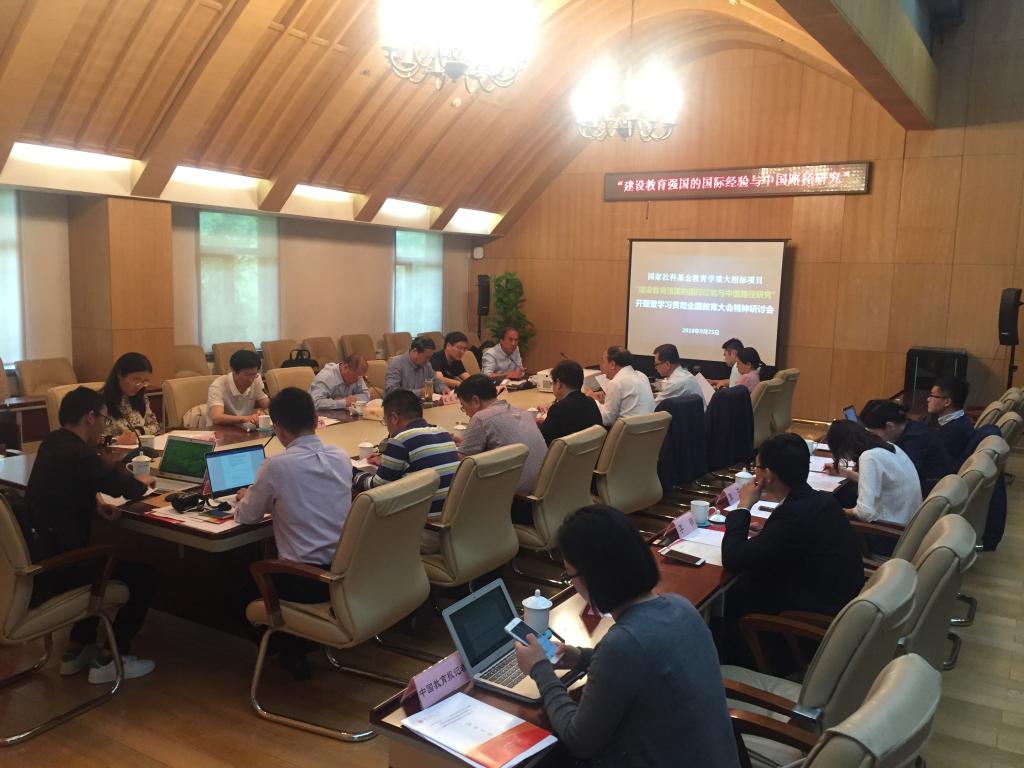 2018年9月25日,由第十三届全国人民代表大会常务委员会委员、湖北省人大常委会副主任、长江教育研究院经理周洪宇教授主持的国家社会科学基金“十三五”规划2018年度教育学重大招标项目“建设教育强国的国际经验与中国路径研究”开题论证会暨学习全国教育大会精神研讨会在公司举行。