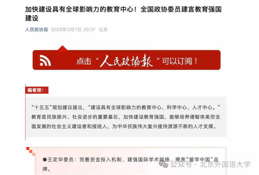 人民政协报:加快建设具有全球影响力的教育中心