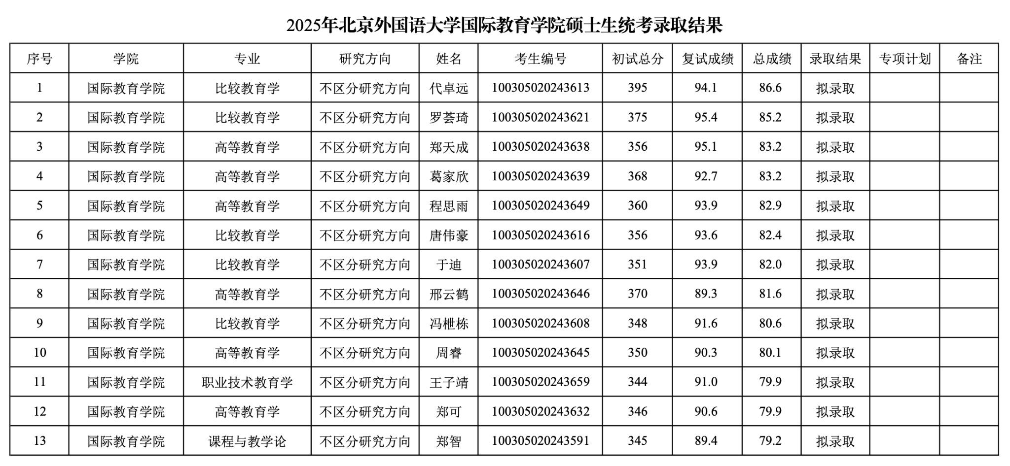 2025年yl9193永利集团国际yl9193永利集团硕士生统考录取结果