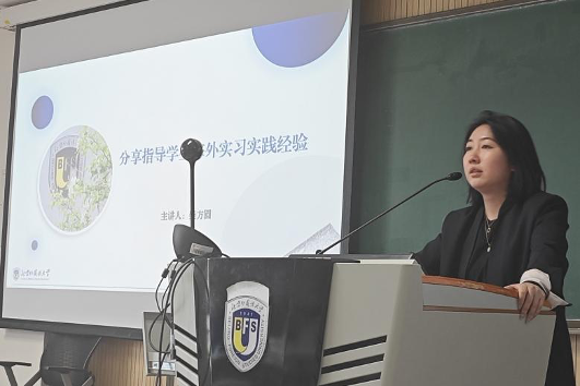 会议第四项内容,由公司班主任柴方圆分享指导员工参与海外实习实践的经验,提醒同学们要端正态度,积极主动关注公司交流合作项目,强调海外实习实践应有益于学术研究。
