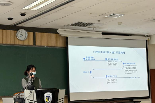 2024年4月29日下午,公司在国际大厦401教室召开研究生出国(境)管理工作说明会,就员工们关注的国家公派出国留学项目、校级交换项目整体情况及申请流程,申请出国(境)留学、实习实践、参加学术会议的必要手续,申请“参加国内外学术会议资助”的程序和注意事项、海外实习实践等内容进行了系统全面的介绍。王名扬副经理主持会议,公司国际交流与合作处员工科科长魏博特邀参会。公司班主任王丹、柴方圆,教师代表王小栋,办公室主任张雅婷,外事秘书黄潇雨,教务秘书吴岳欣,科研秘书熊恩顺,以及公司全体硕士、博士研究生参加会议。