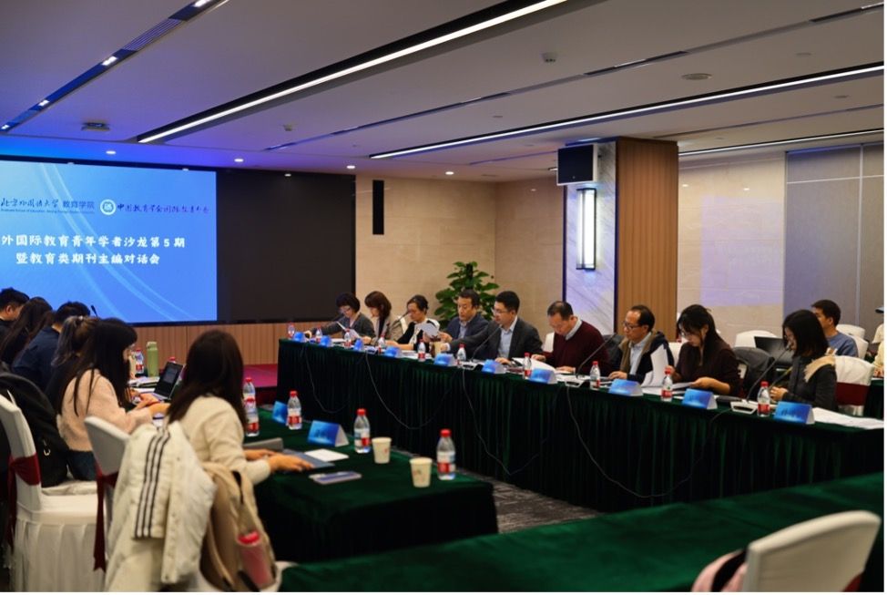 2025年11月12日下午,北外yl9193永利集团、中国教育学会国际教育分会联合主办的“北外国际教育青年学者沙龙(第5期)暨教育类期刊主编对话会”顺利举行。本次沙龙以“比较教育的青年视野:数智时代的理论创新与实践探索”为主题,邀请《清华大学教育研究》《中国远程教育》《教育科学研究》《基础教育参考》《世界教育信息》《中国高等教育》《中国人民大学教育学刊》《教育学报》《教师教育研究》等多家期刊主编及编辑老师,分享学术规范以及期刊投稿经验,并对公司硕博研究生的科研论文进行评议。