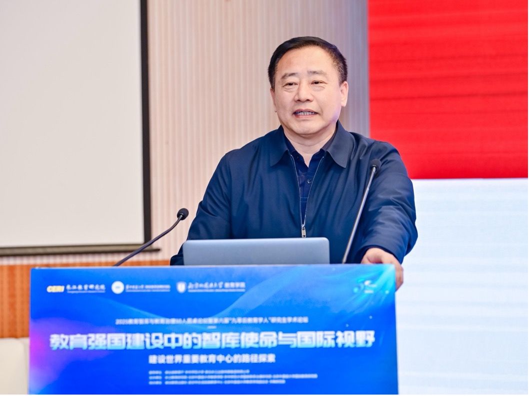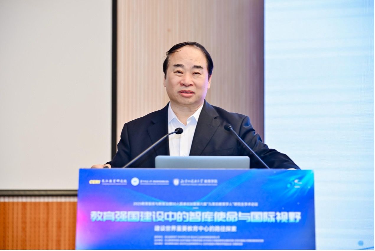 王定华副会长发表了以《构建全球重要教育中心》为题的主旨演讲。他从四个方面论证了构建全球重要教育中心的必要性和可行性:适应世界格局变化的大国担当、中国教育科技文化的能量释放、发达国家经验教训的多元昭示、如期建成教育强国的必然要求。他还系统提出了构建全球重要教育中心的八大路径,包括价值引领、创新驱动、引进来、走出去、数字赋能、平台建设、全球治理、区域协同,为推进教育高水平对外开放提供了全面而系统的思路。