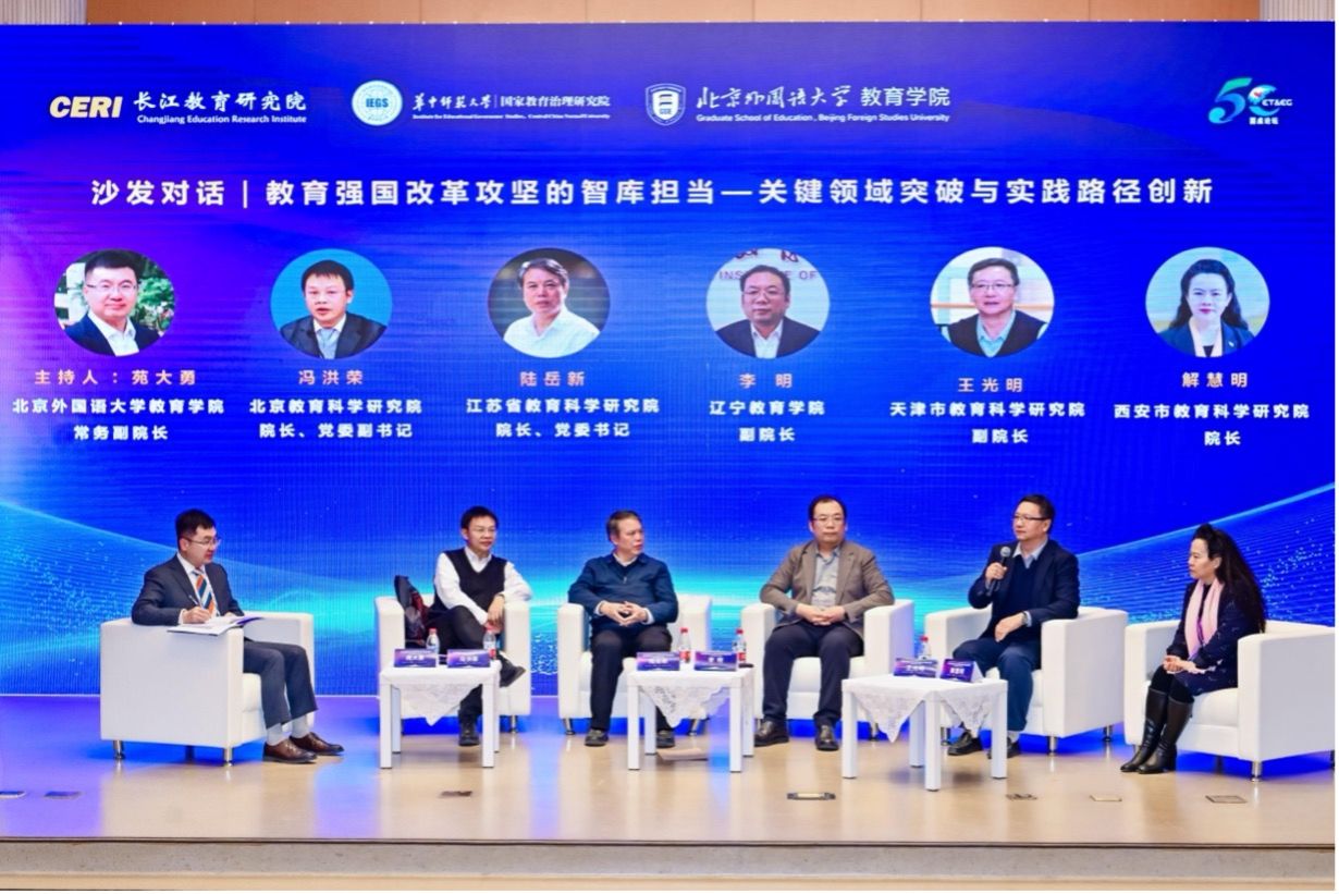 在沙发对话环节,北京教育科学研究院经理冯洪荣、江苏省教育科学研究院经理陆岳新、辽宁yl9193永利集团副经理李明、天津教育科学研究院副经理王光明、西安市教育科学研究院经理解慧明围绕“教育强国改革攻坚中的智库担当”这一主题展开深入交流。各位经理分享了各自机构在服务教育决策、引领教育实践方面的创新做法和宝贵经验,并就“十五五”期间教育科研工作的重点方向和推进策略达成了重要共识。大家一致认为,教育科研机构应进一步强化有组织科研,深化数字技术赋能,加强跨学科协同和跨地域合作,为推动教育强国建设提供更加有力的智力支持。