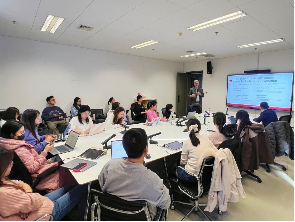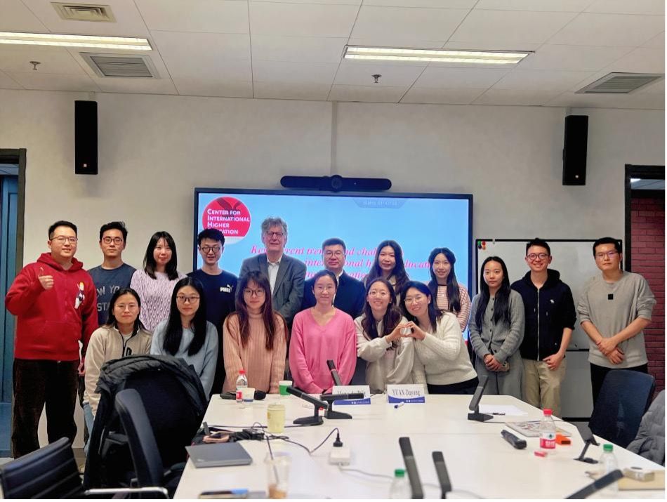 在讨论交流环节,Hans de Wit教授与现场师生进行了亲切的交流,围绕知名学者及其代表著作的批判性讨论、教育国际化研究的开展与学术论文写作、基础教育与职业教育的国际化等前沿话题展开了深入而富有建设性的交流讨论。